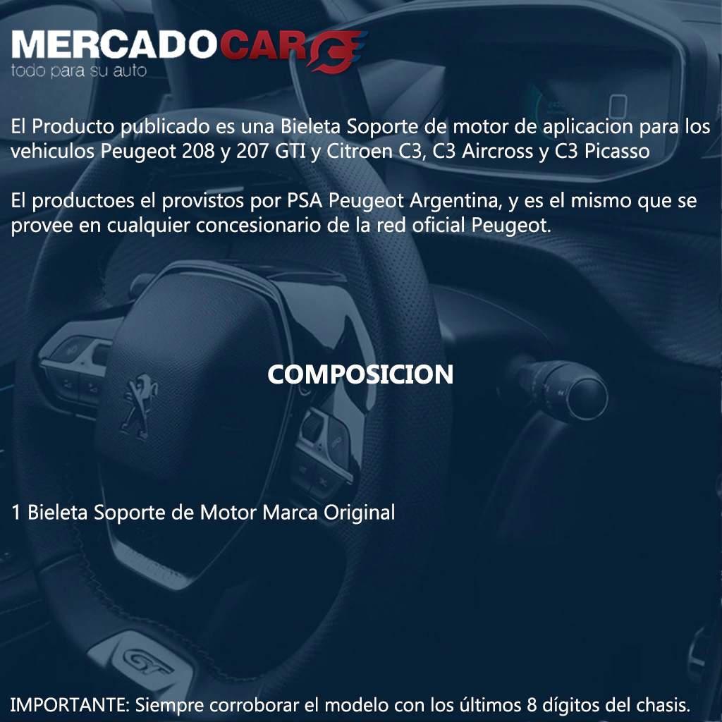 El Producto publicado es una Bieleta Soporte de motor de aplicacion para los vehiculos Peugeot 208 y 207 GTI y Citroen C3, C3 Aircross y C3 Picasso