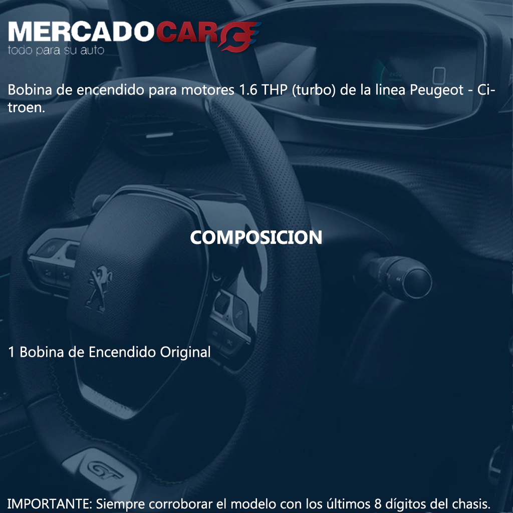 Bobina de encendido para motores 1.6 THP (turbo) de la linea Peugeot - Citroen.