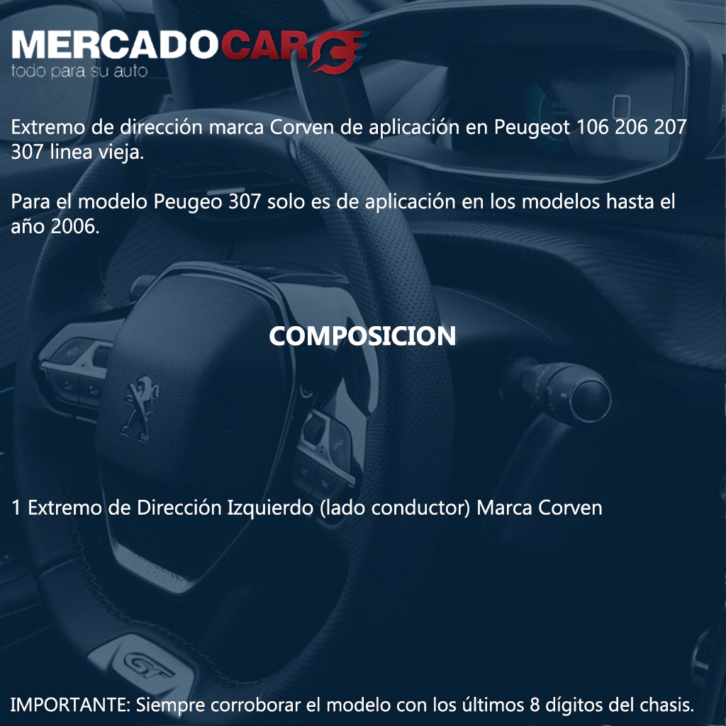 Extremo de dirección marca Corven de aplicación en Peugeot 106 206 207 307 linea vieja.