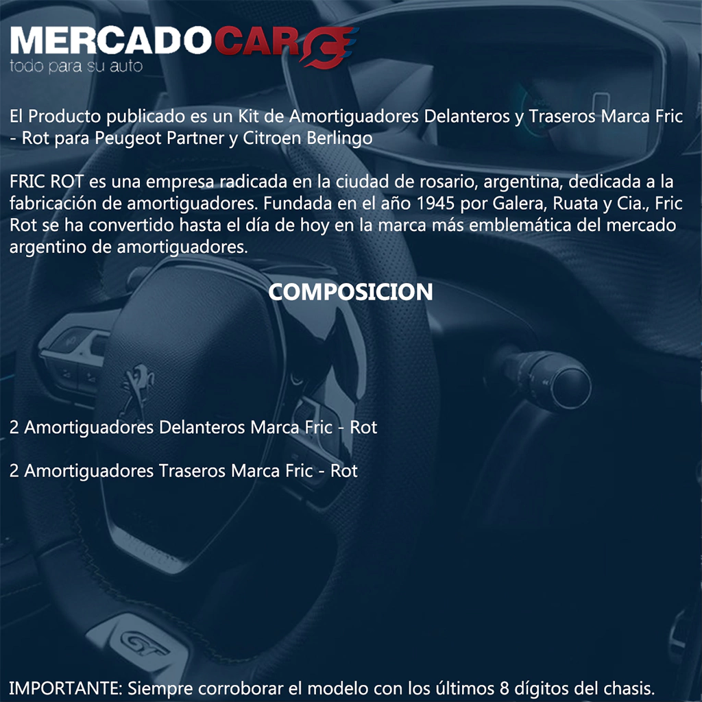 El Producto publicado es un Kit de Amortiguadores Delanteros y Traseros Marca Fric - Rot para Peugeot Partner y Citroen Berlingo