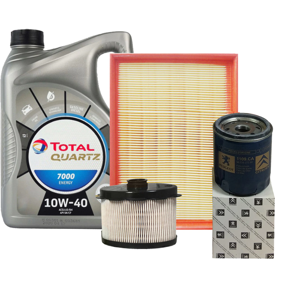Kit De 3 Filtros Originales + Aceite Peugeot 206 / 207 1.9 Diesel. La vida útil de los filtros es de 10.000 km.