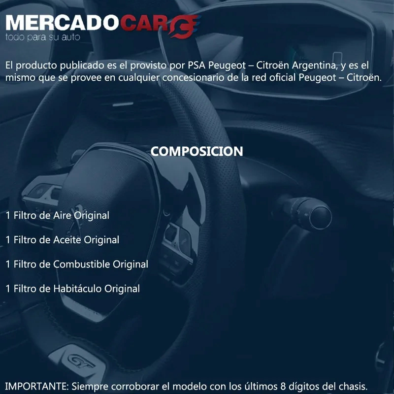 El producto publicado es el provisto por PSA Peugeot Citroën Argentina, y es el mismo que se provee en cualquier concesionario de la red oficial Peugeot Citroën.