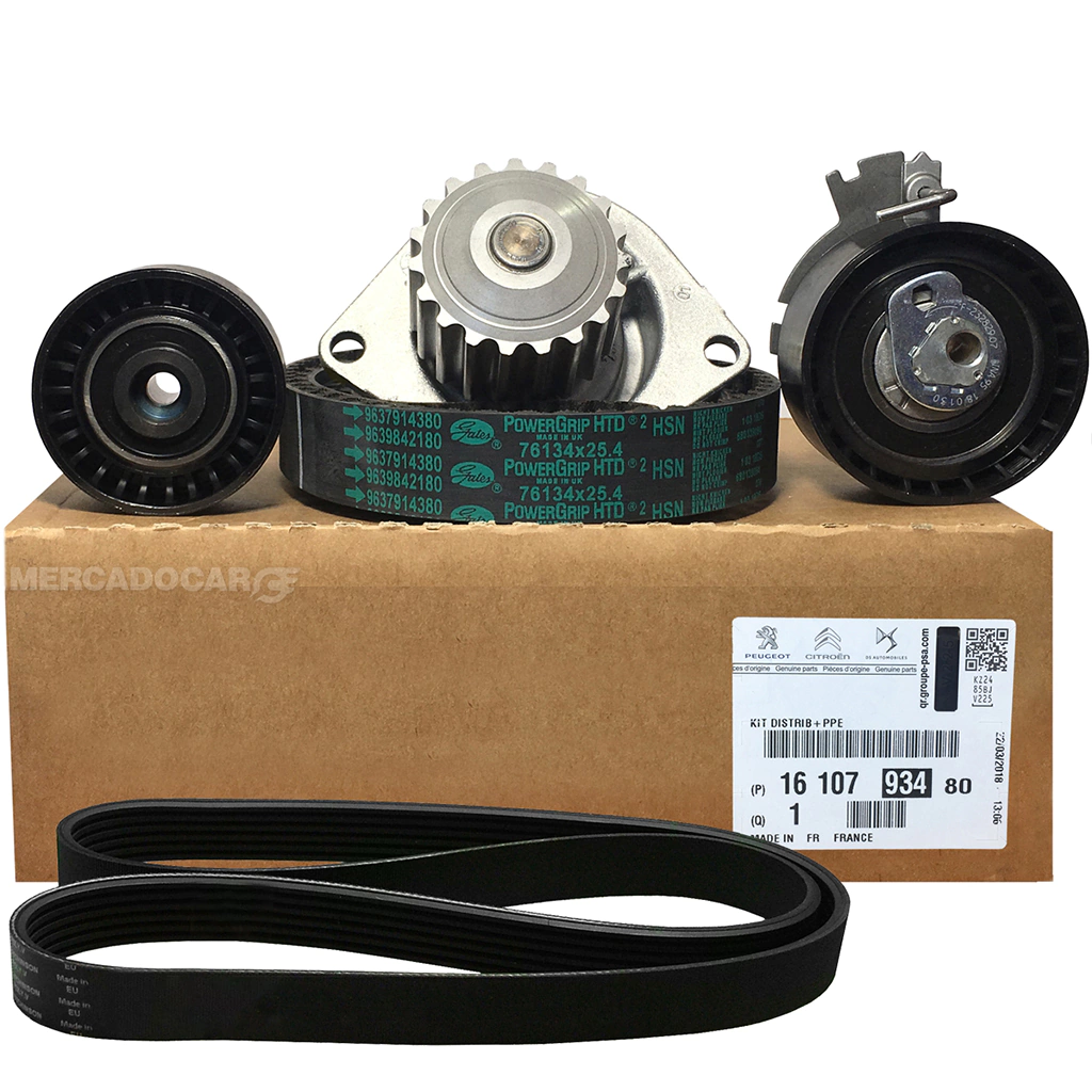 Kit de distribución con bomba de agua 100% original para motores 1.6 16v (Naftero) de la línea Peugeot - Citroën.