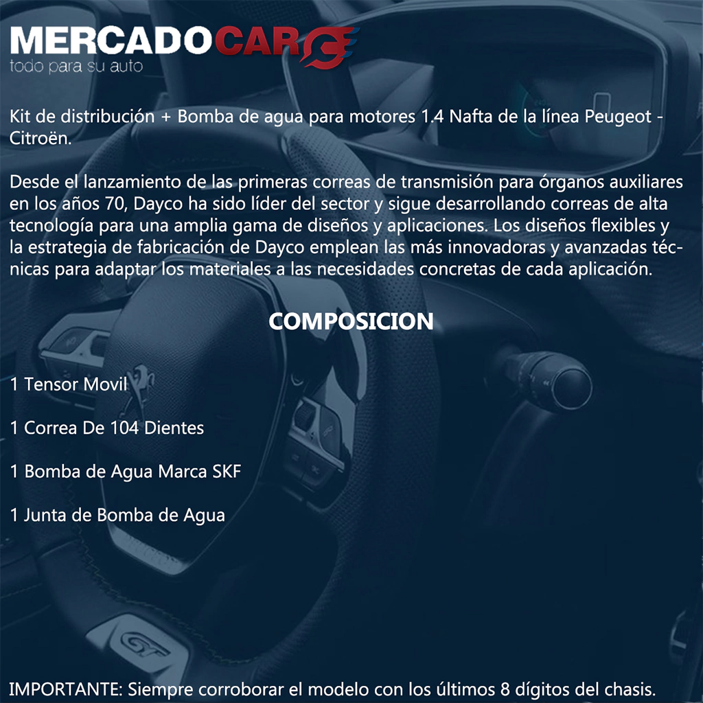 Kit de distribución + Bomba de agua para motores 1.4 Nafta de la línea Peugeot - Citroën.