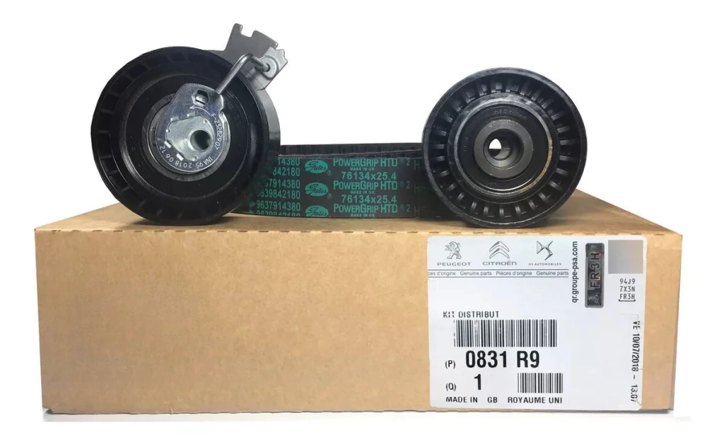 El kit de distribución es 100% original provisto por PSA Peugeot - Citroën Argentina, y es el mismo que se provee en cualquier concesionario de la red oficial Peugeot - Citroën. La bomba de agua es marca Dolz que si bien no es la original es de una reconocida primera marca.