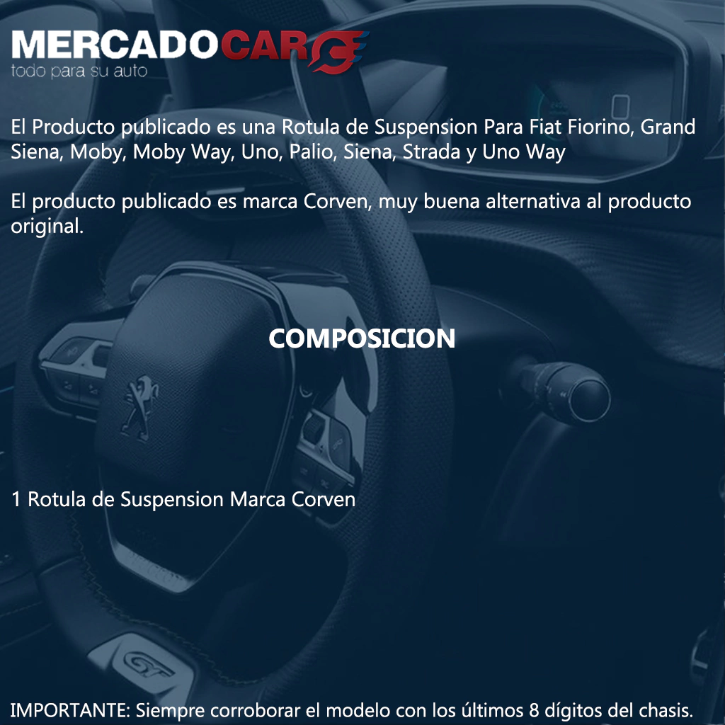 El Producto publicado es una Rotula de Suspension Para Fiat Fiorino, Grand Siena, Moby, Moby Way, Uno, Palio, Siena, Strada y Uno Way